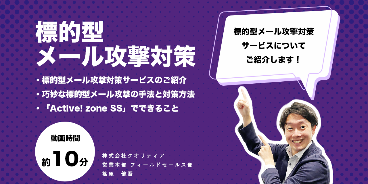 ※2023年4月20日開催の自社ウェビナー「5 月リリース!クラウド型標的型メール攻撃対策「Active! zone SS」プレビューウェビナー」登壇の際の切り抜き動画です。